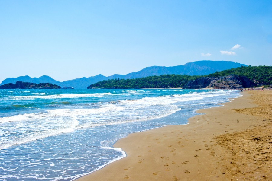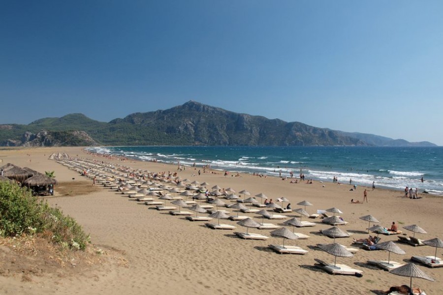 Het Iztuzu-strand is beroemd om haar reuze schildpadden caretta carettas. Iztuzu strand faciliteiten van het ene uiteinde van het strand, en het andere uiteinde van de Dalyanızı dagelijks strand faciliteiten bevinden. Het strand strekt zich uit voor mijl. Iztuzu strand is bereikt over de weg vanuit Dalyan. De asfaltweg Delta, die afkomstig is van Dalyan, wordt gevolgd door de oevers van de Sulüngur de dorpen overtocht naar het strand. Naarmate je dichter bij het strand, zijn er openingen te fotograferen op de stijgende weg. Het is een panaroma die het hele gat en het strand duurt.