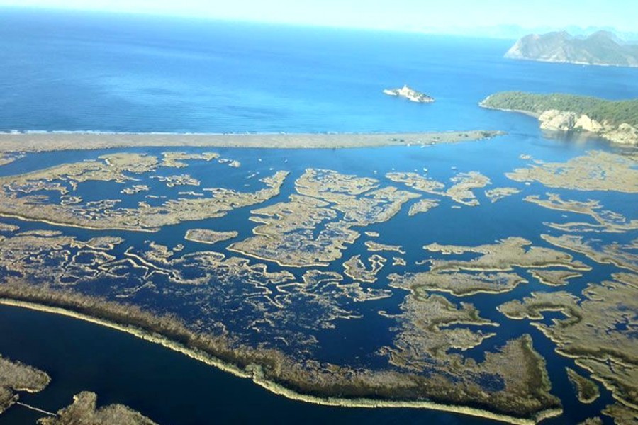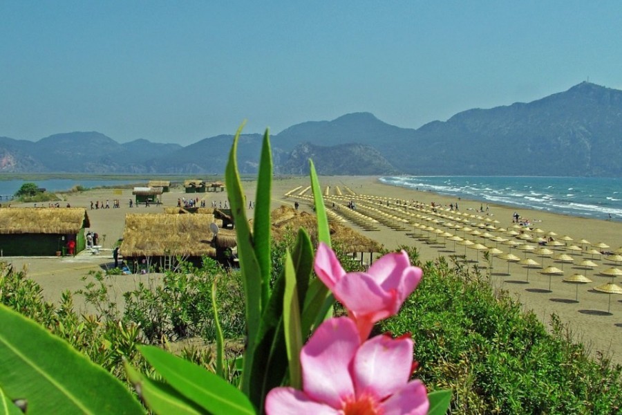 İztuzu sahili dev kaplumbağalar Caretta Carettalar ile dünyaca ünlendi. Kumsalın bir ucunda İztuzu Plajı tesisleri, öteki ucunda da Dalyanağzı Günübirlik Plaj tesisleri yer alıyor. Kumsal kilometrelerce uzanıyor. İztuzu Plajına Dalyan`dan karayoluyla ulaşılıyor. Dalyan`dan çıkan asfalt yol deltayı, sülüngür kıyısını izleyerek köylerden geçerek iniyor plaja. Plaja yaklaştıkça yükselen yol üzerinde fotoğraf çekmeye uygun açıklıklar oluşuyor. Tüm deltayı ve kumsalı içine alan bir panaroma bu.